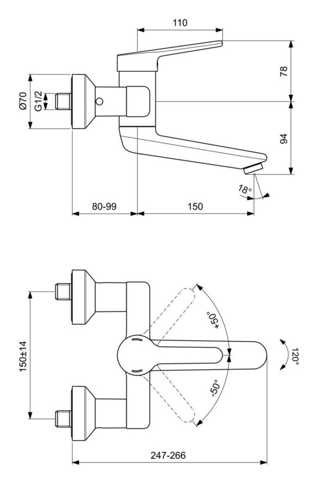 Смеситель Ideal Standard Ceraplus 2.0 настенный для раковины, хром, BC111AA