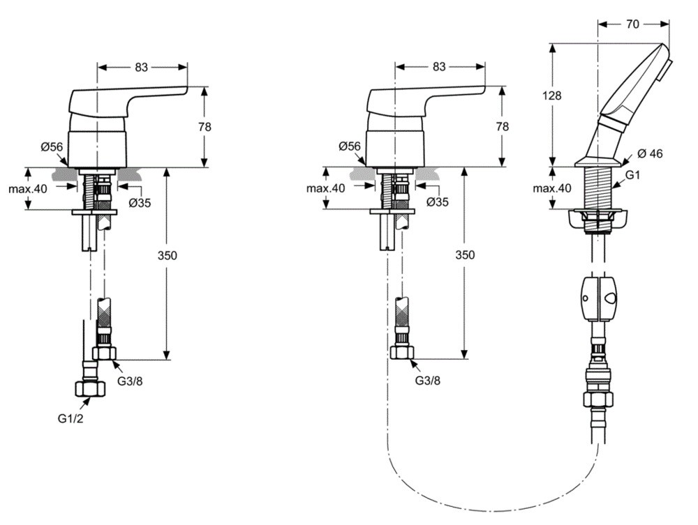 Смеситель Ideal Standard Cerasprint 2012 для парикмахерской мойки, хром, A5727AA