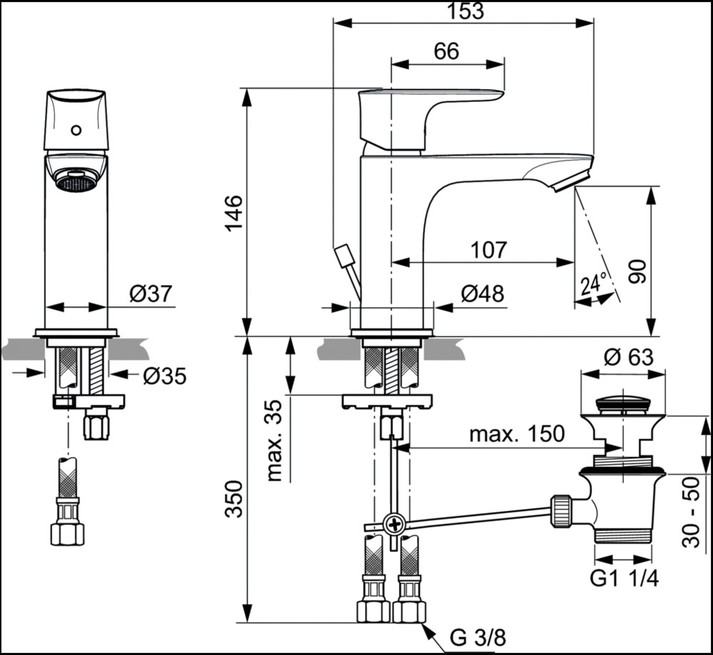 Смеситель Ideal Standard Connect Air A7007AA для раковины, с донным клапаном