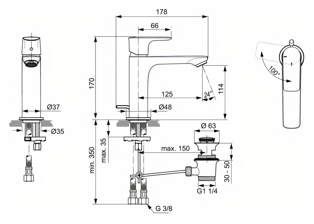 Смеситель Ideal Standard Connect Air Grande для раковины, хром, A7013AA