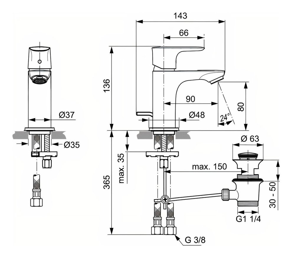 Смеситель Ideal Standard Connect Air A7014AA Piccolo для раковины, хром
