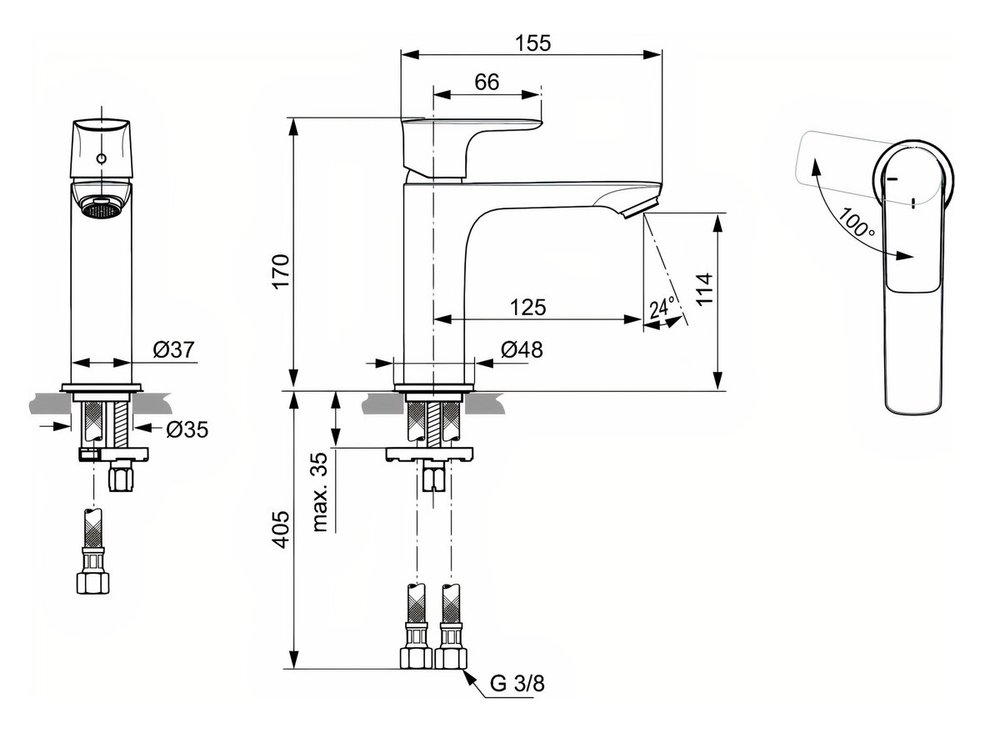Смеситель Ideal Standard Connect Air Grande для раковины, хром, A7016AA