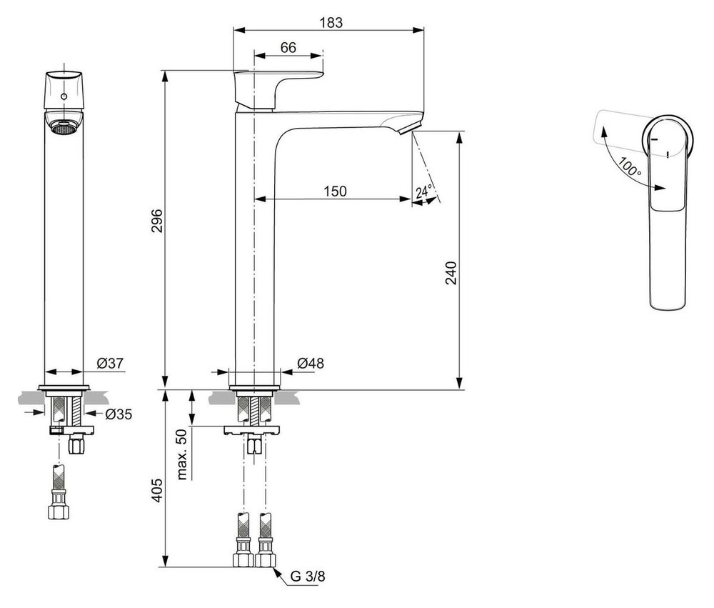 Смеситель Ideal Standard Connect Air A7028AA Vessel для раковины, хром