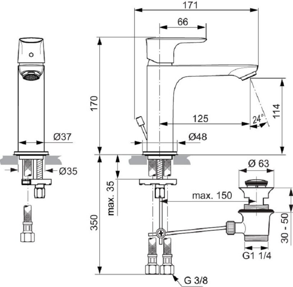 Смеситель Ideal Standard Connect Air Grande A7012AA для раковины, с донным клапаном