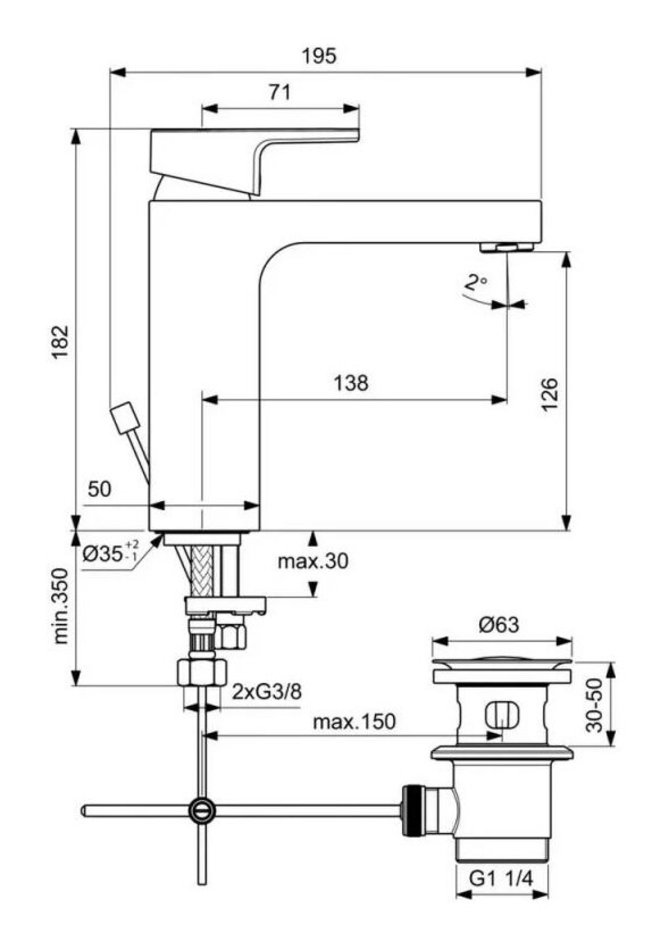 Смеситель Ideal Standard Edge Project Grande для раковины, хром, A7109AA
