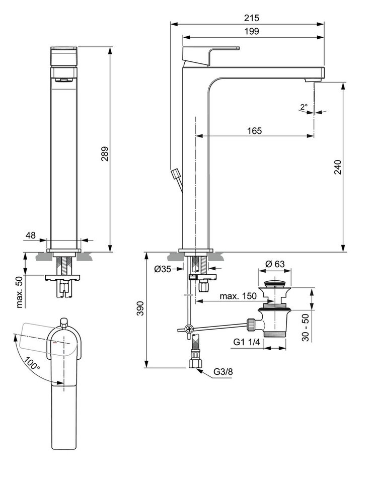Смеситель Ideal Standard Edge Vessel для раковины, хром, A7113AA