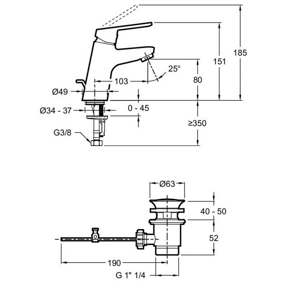 Смеситель Jacob Delafon Aime для раковины, с донным клапаном, черный матовый, E29869-BL