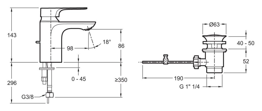 Смеситель Jacob Delafon ALEO+ E72312-CP для раковины с донным клапаном