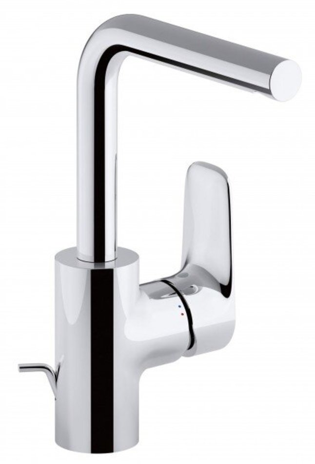Однорычажный смеситель для раковины с высоким поворотным изливом и картриджем С3 (смещенный центр выпуска воды).