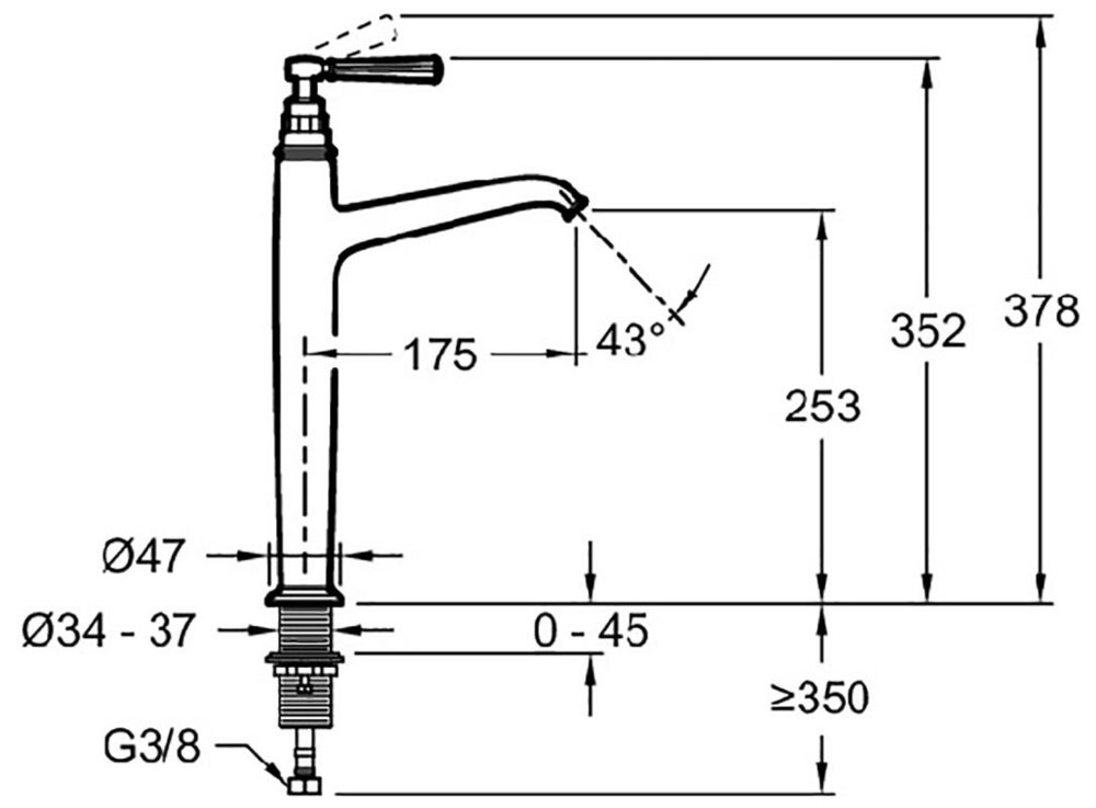 Высота под изливом 25 см, что обеспечивает хорошую совместимость с большинством раковин.