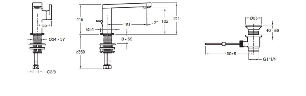 Смеситель Jacob Delafon Composed для раковины с донным клапаном, хром, E73167-CP