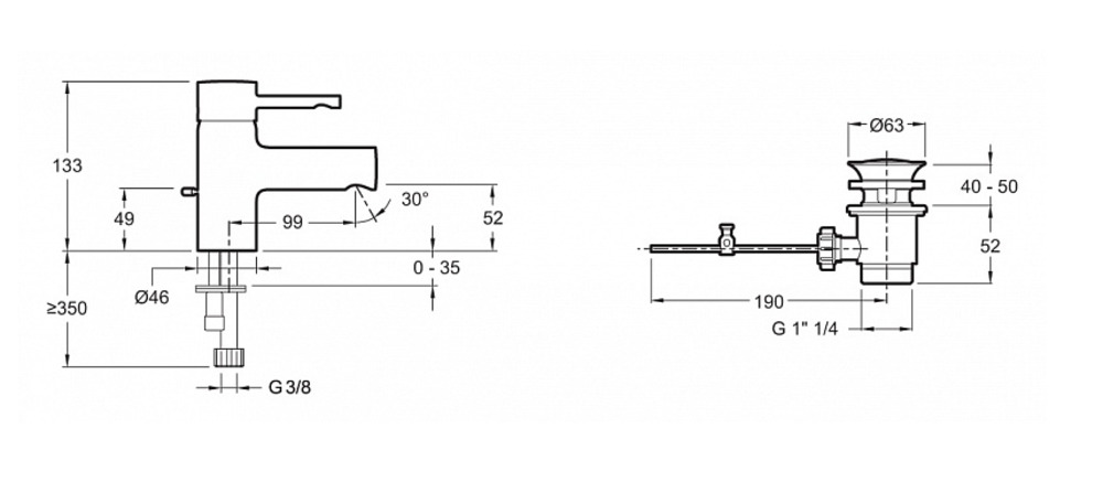 Смеситель Jacob Delafon Cuff E37301-CP для раковины с донным клапаном