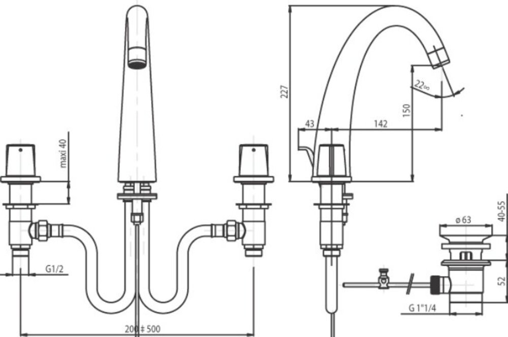 Смеситель Jacob Delafon Elevation E18871 для раковины, на 3 отверстия.