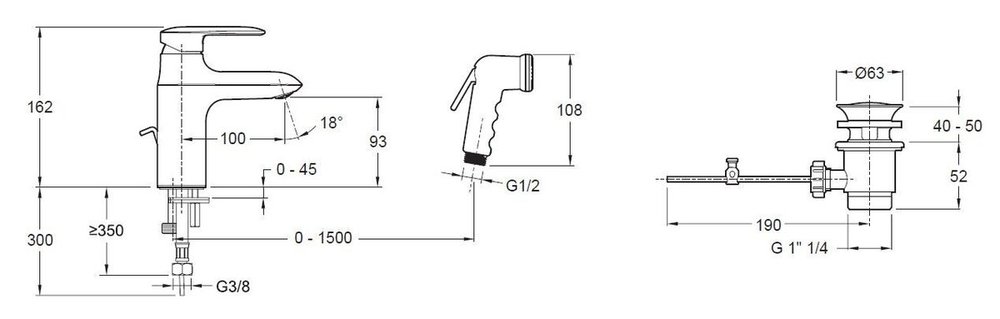 Смеситель Jacob Delafon Kumin, для раковины с гигиеническим душем, хром, E99465-CP