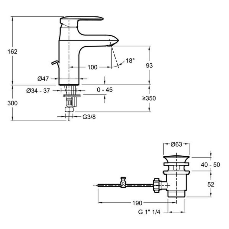 Смеситель Jacob Delafon Kumin E98827-CP для раковины с донным клапаном