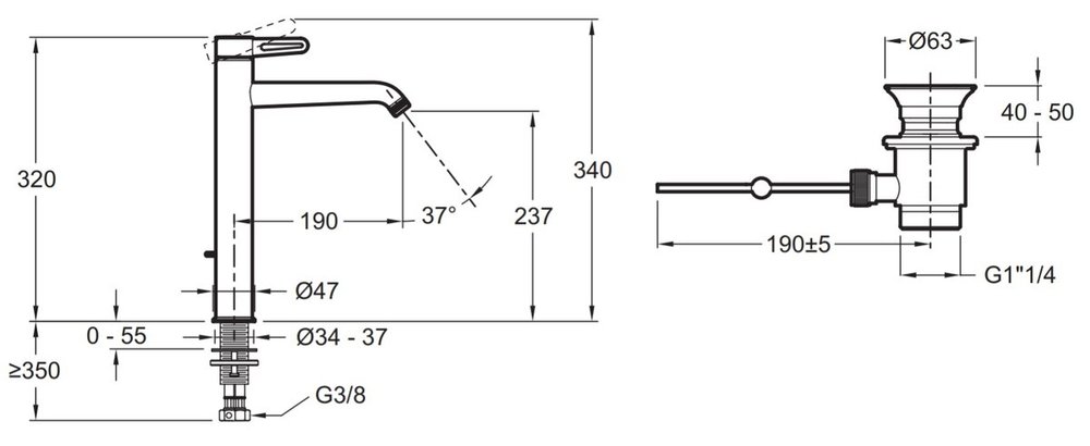 Смеситель Jacob Delafon Nouvelle Vague E78337-BLV для раковины, высокий, с донным клапаном, цвет черный матовый
