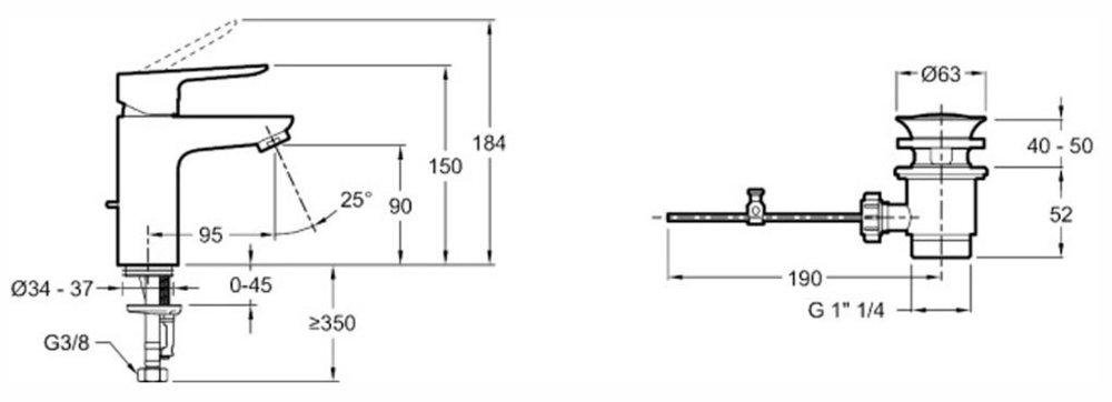 Смеситель Jacob Delafon Oscar E29842-CP для раковины, с донным клапаном, хром