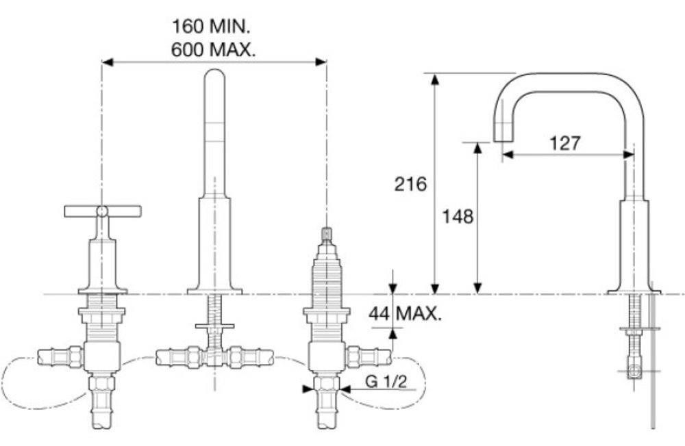 Смеситель Jacob Delafon Purist E144063 для раковины на 3 отверстия без донного клапана