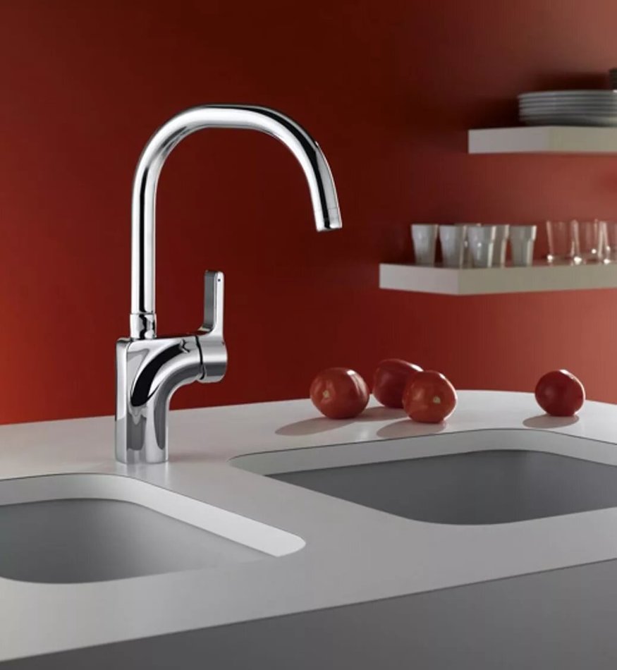 Однорычажный смеситель для раковины с вращающимся изливом.