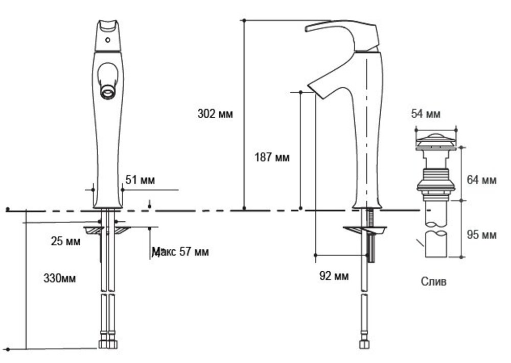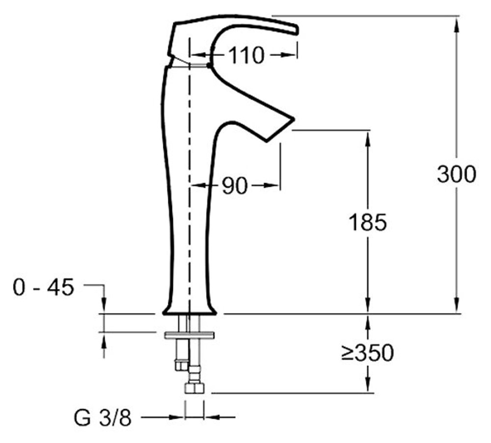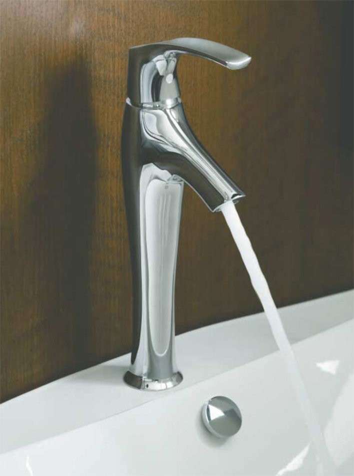 - Высокий смеситель на одно отверстие с гибкой подводкой
