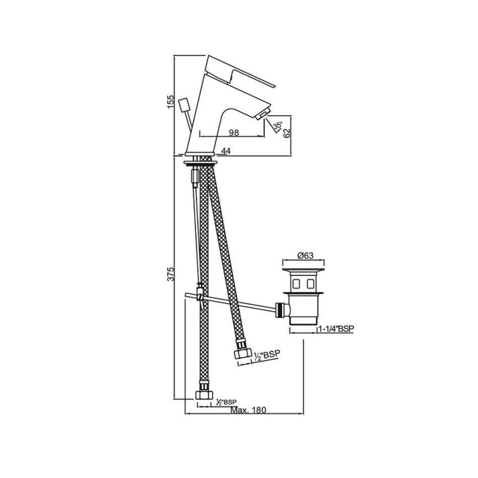 Смеситель Jaquar Lyric LYR-CHR-38051B для раковины, с донным клапаном, хром