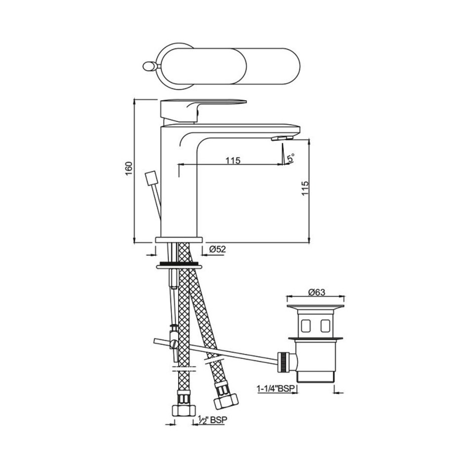 Смеситель Jaquar Opal Prime OPP-CHR-15051BPM для раковины, с донным клапаном, хром