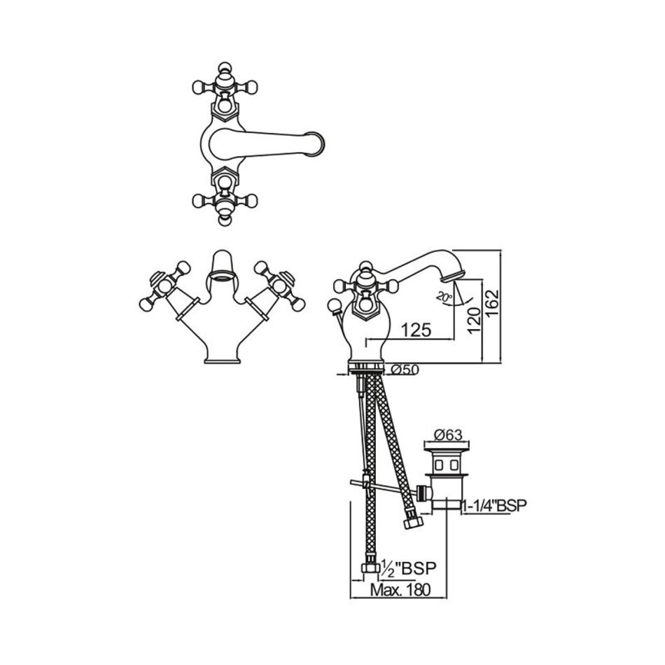 Смеситель Jaquar Queen QQT-CHR-7169B для раковины, с донным клапаном, хром