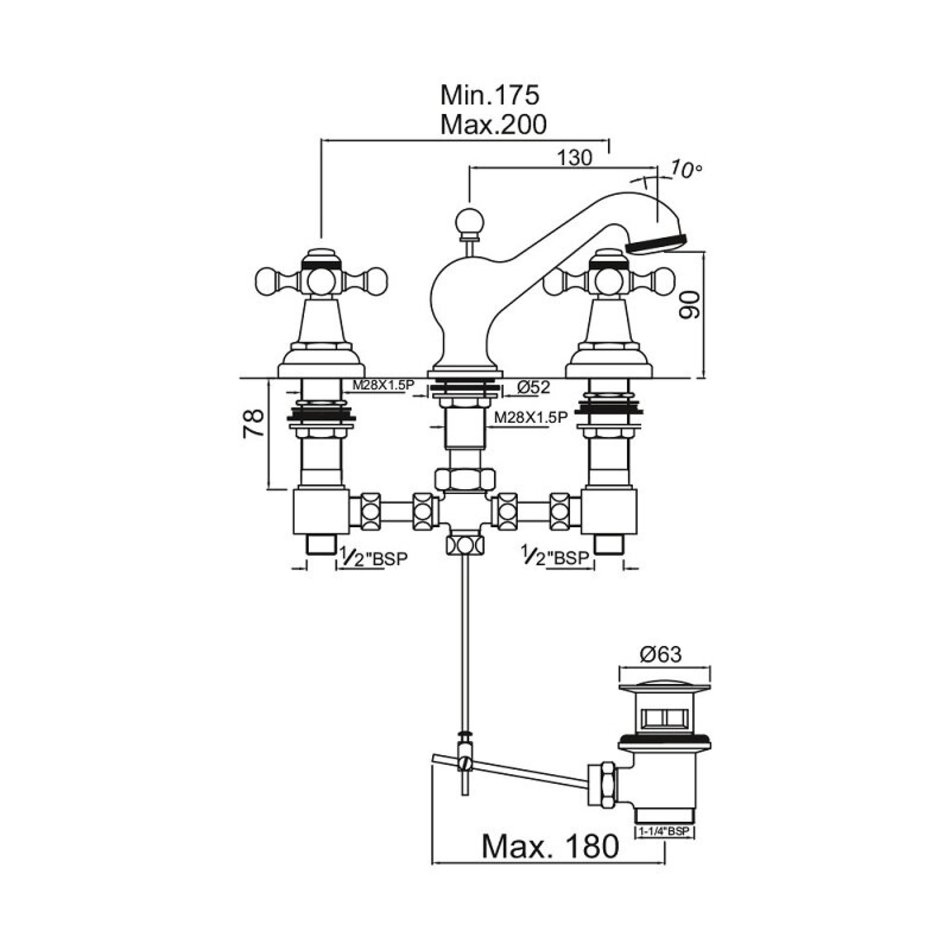 Смеситель Jaquar Queen QQT-CHR-7191 для раковины, с донным клапаном, хром