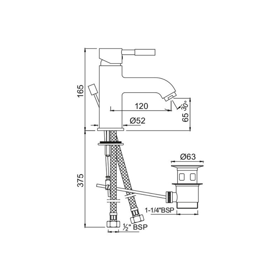 Смеситель Jaquar Solo SOL-CHR-6051B для раковины, с донным клапаном, хром