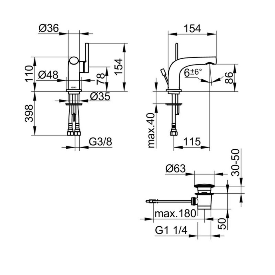 Смеситель Keuco Edition 400 51504010000 для раковины, с донным клапаном, цвет хром
