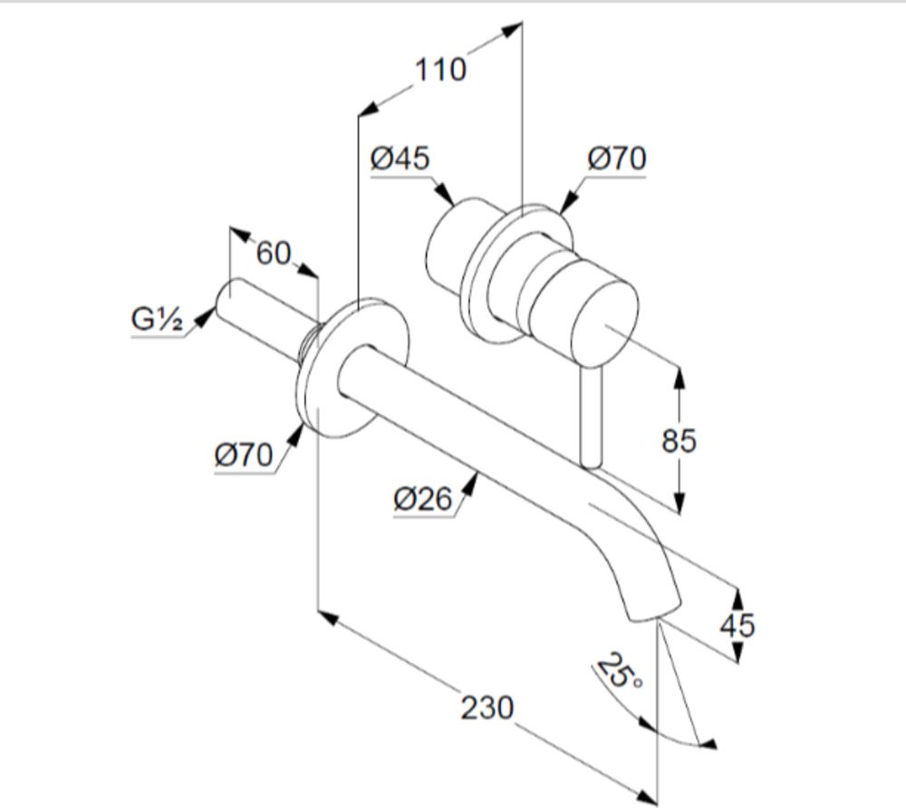 Внешняя монтажная часть, внутренняя (скрытая) часть смесителя приобретается отдельно.