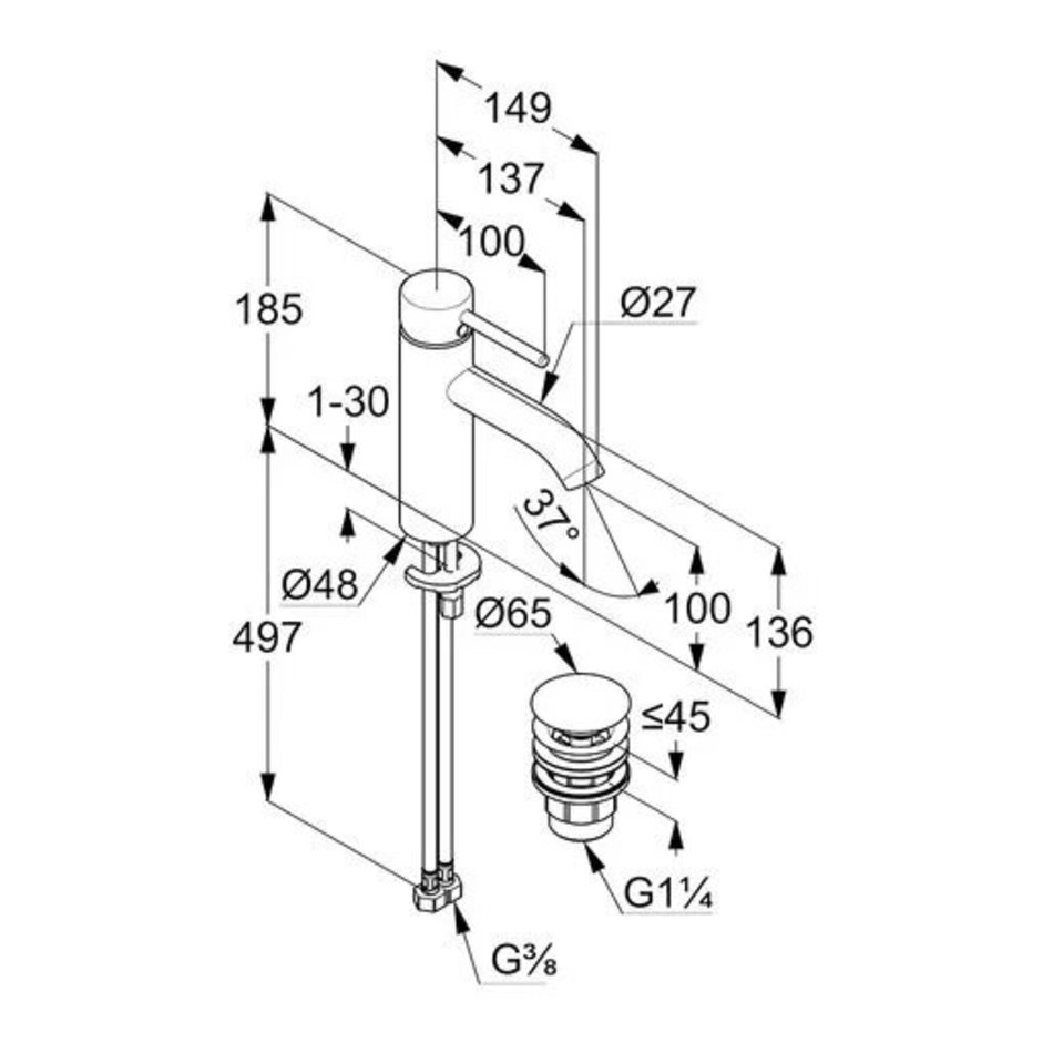 Смеситель Kludi Bozz 382883976 для раковины, донный клапан Push-Open, черный матовый (отсутствует упаковка)