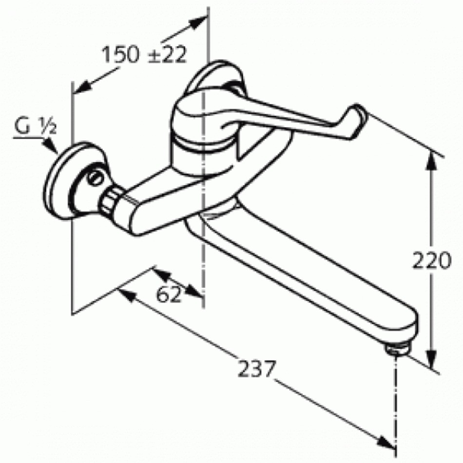 - Длина излива от стены 237 мм