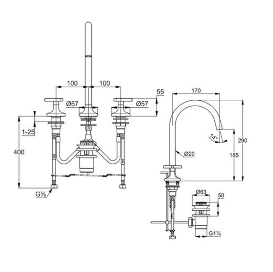 Смеситель Kludi Nova Fonte 201430539 для раковины на 3 отверстия Deco, хром