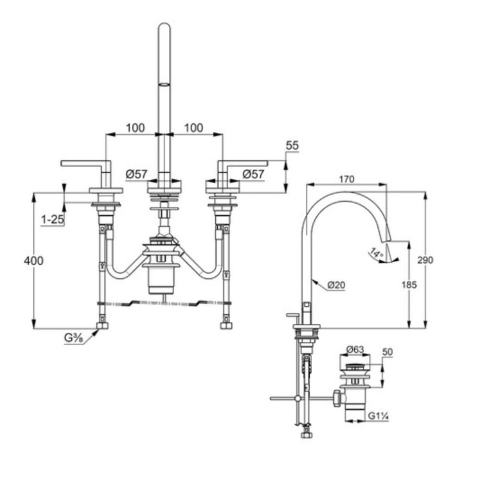 - В комплекте со смесителем поставляется донный клапан (входит в стоимость)