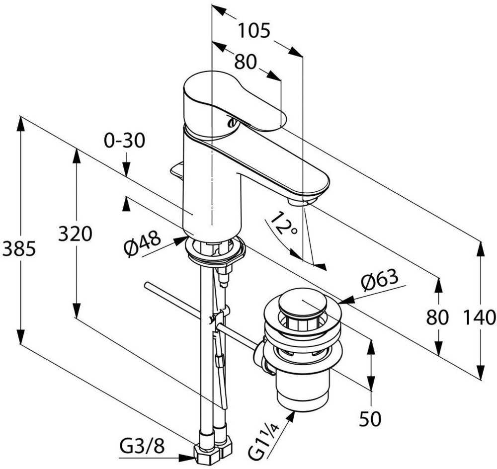 Смеситель Kludi Objekta 322350575 для раковины, с донным клапаном, 5 л/мин