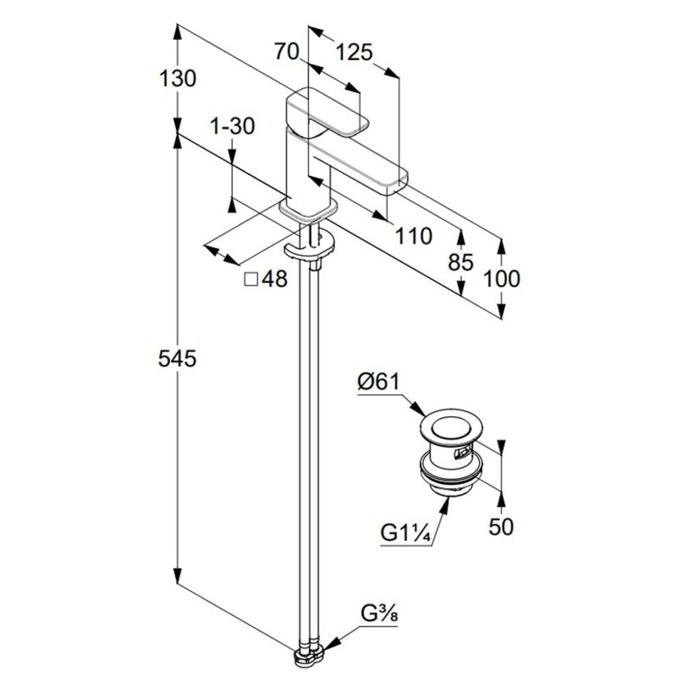 Смеситель Kludi Renon 422663975 для раковины, с донным клапаном, Eco, цвет черный матовый
