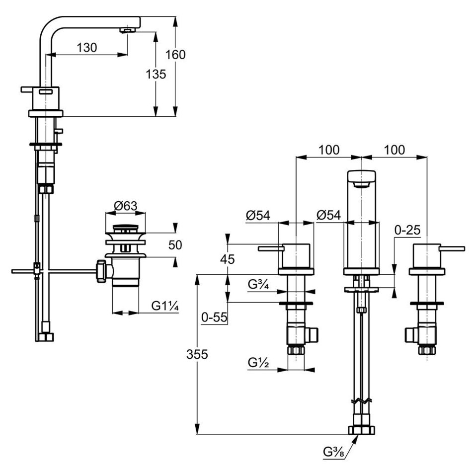 Смеситель Kludi Zenta 383930575 для раковины, на 3 отверстия, литые рычаги