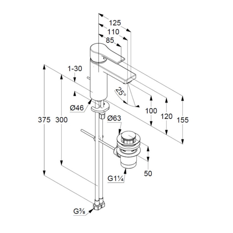 Смеситель Kludi Zenta SL 482903965 для раковины, c донным клапаном, цвет черный матовый