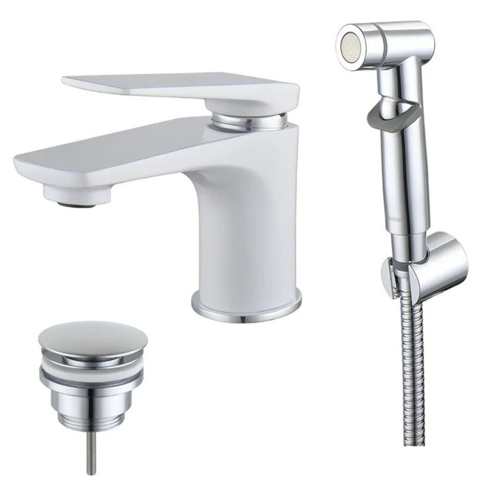 Смеситель Lemark Allegro LM5916CW для раковины с гигиеническим душем, хром/белый