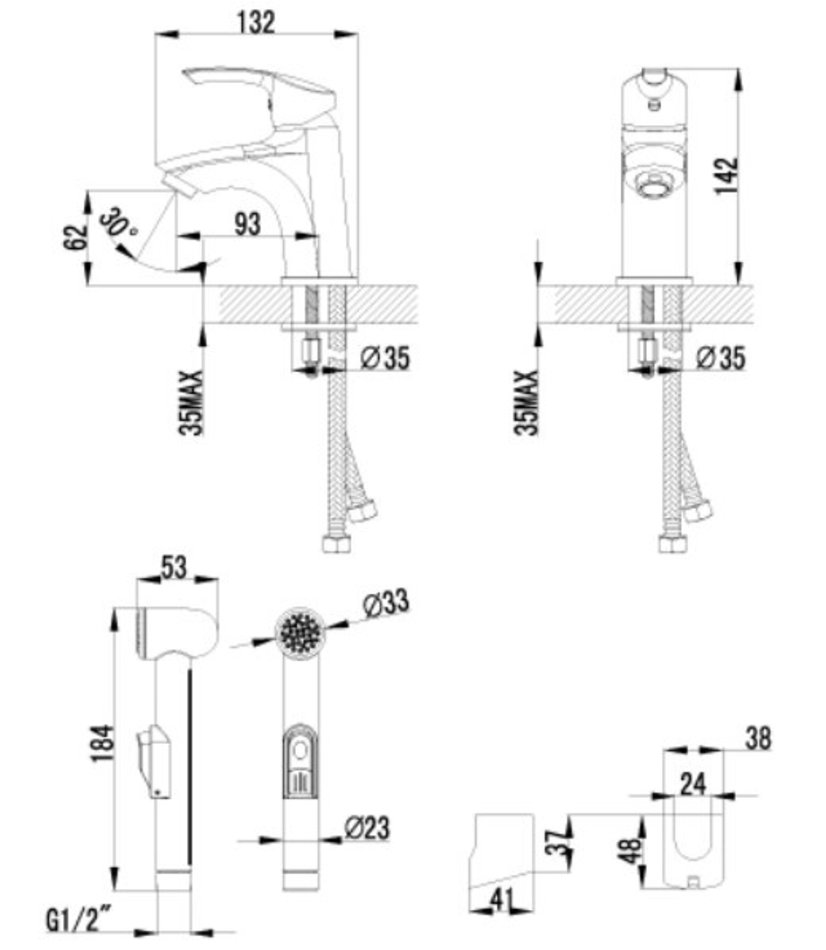 - Подводка: гибкая 1/2" 35 см