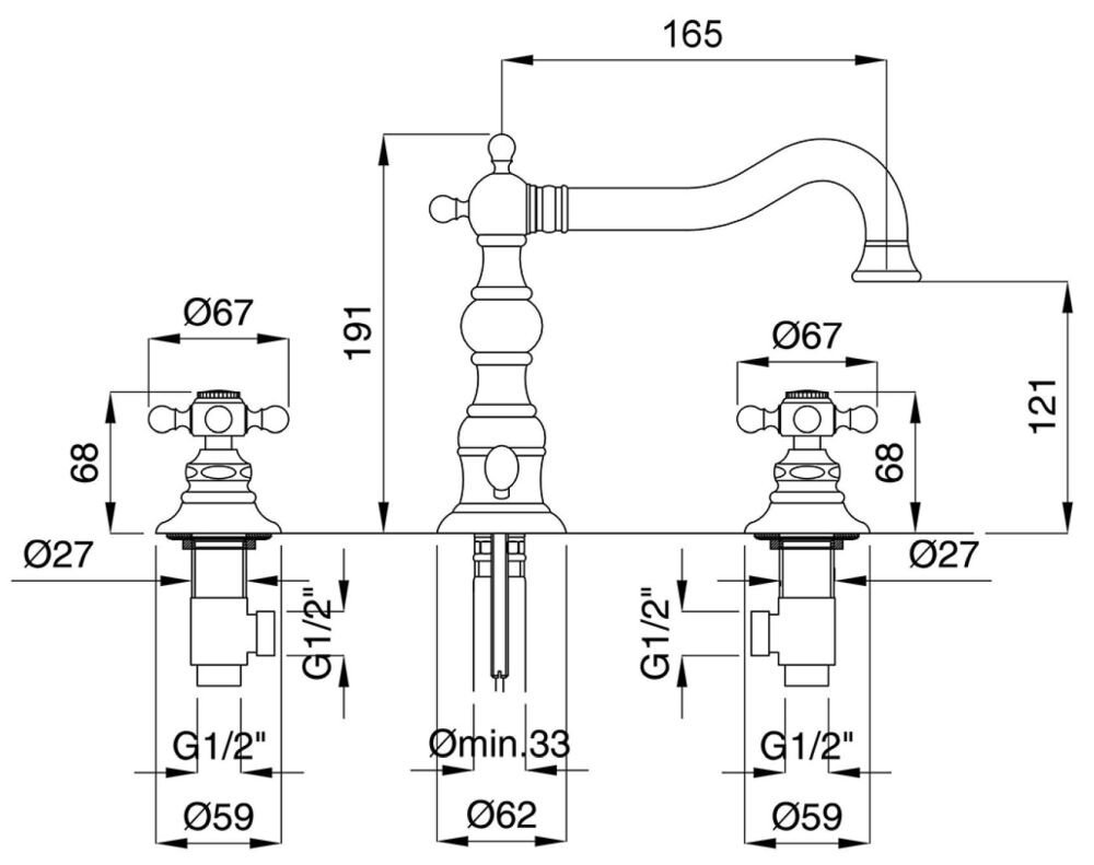 Смеситель Migliore Arcadia 18397 для раковины на 3 отв. - золото