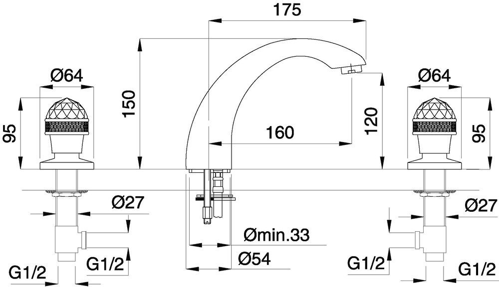 Смеситель Migliore Axo Swarovski для раковины - золото, на 3 отверстия, 27114