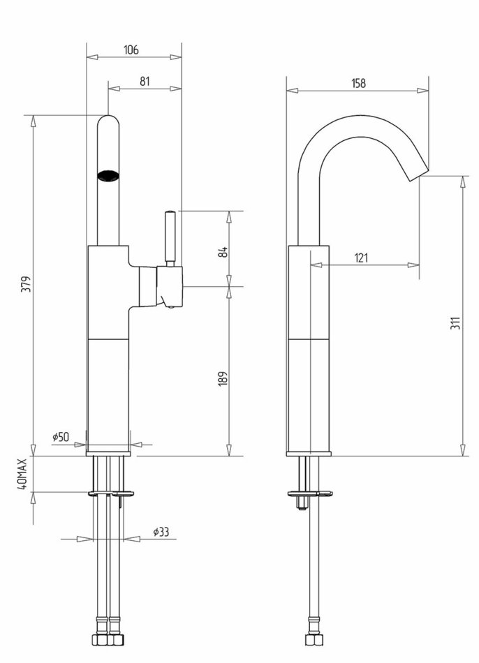 - Форма излива: традиционная