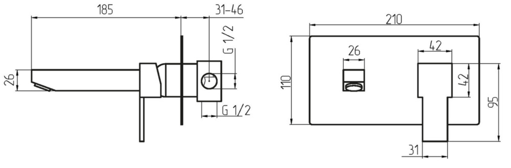 Смеситель Migliore Kvant ML.KVT-2745 скрытого монтажа для раковины, настенный