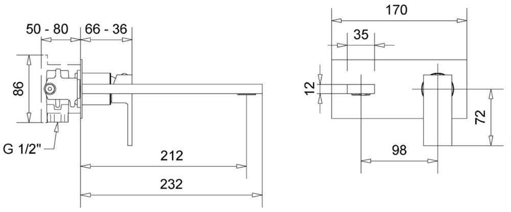 Смеситель Migliore Kvant ML.KVT-2745 скрытого монтажа для раковины, настенный