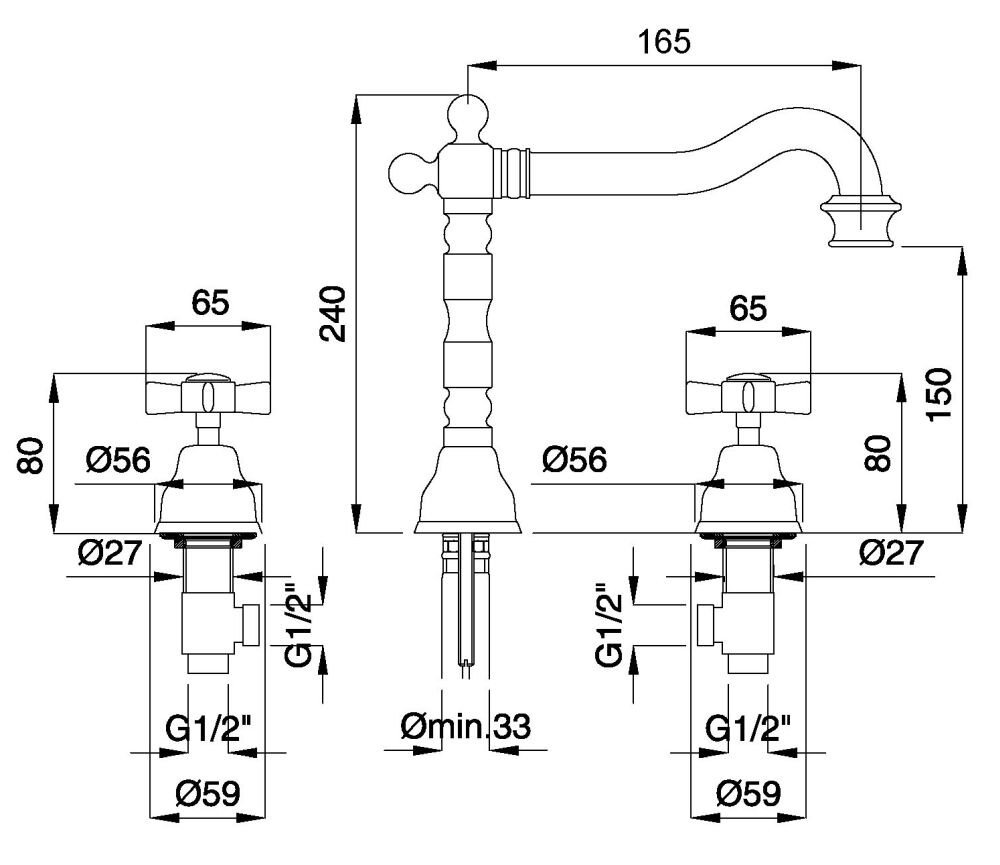 Смеситель Migliore Princeton 19350 для раковины - бронза, на 3 отверстия