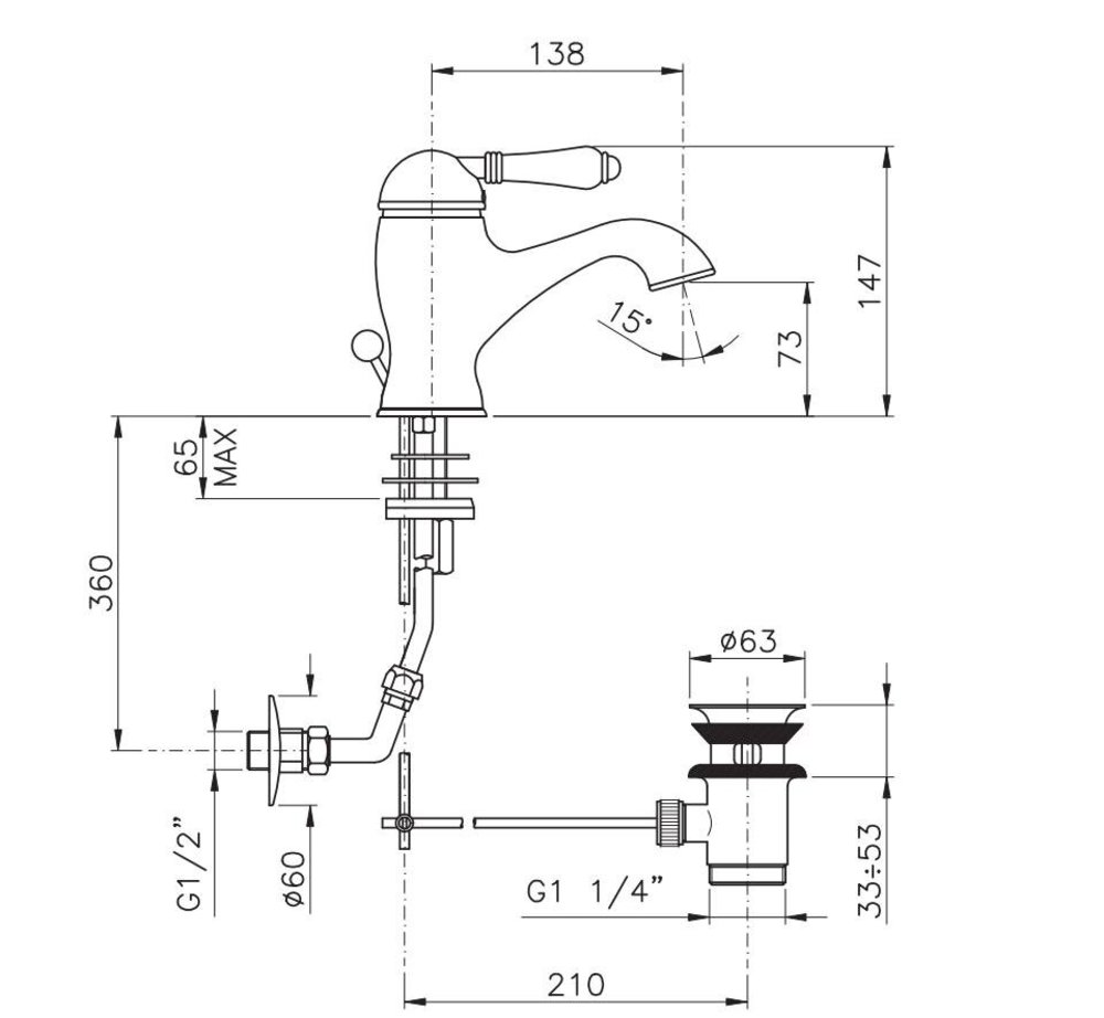Смеситель Nicolazzi Classico Monokomandi 3402CR75 для раковины, хром, ручки EL CAPITAN