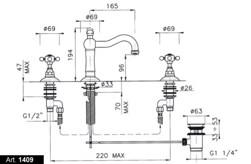 Смеситель Nicolazzi Dames Anglaises 1409CR18 для раковины на 3 отверстия, хром