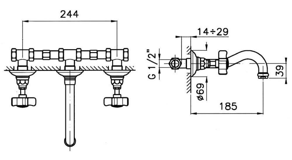 Смеситель Nicolazzi Dames Anglaises, 1477CR18 настенный для раковины на 3 отверстия, хром